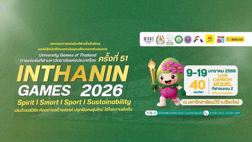 มหาวิทยาลัยเทคโนโลยีราชมงคลล้านนา (มทร.ล้านนา) ในฐานะหนึ่งในเครือข่ายสถาบันอุดมศึกษาเชียงใหม่ 12 แห่ง ร่วมเป็นเจ้าภาพจัดการแข่งขันกีฬามหาวิทยาลัยแห่งประเทศไทย ครั้งที่ 51 “อินทนิลเกมส์ 2026” ระหว่างวันที่ 9 – 19 มกราคม 2569 ณ มหาวิทยาลัยแม่โจ้ และสนามกีฬาของเครือข่ายในจังหวัดเชียงใหม่