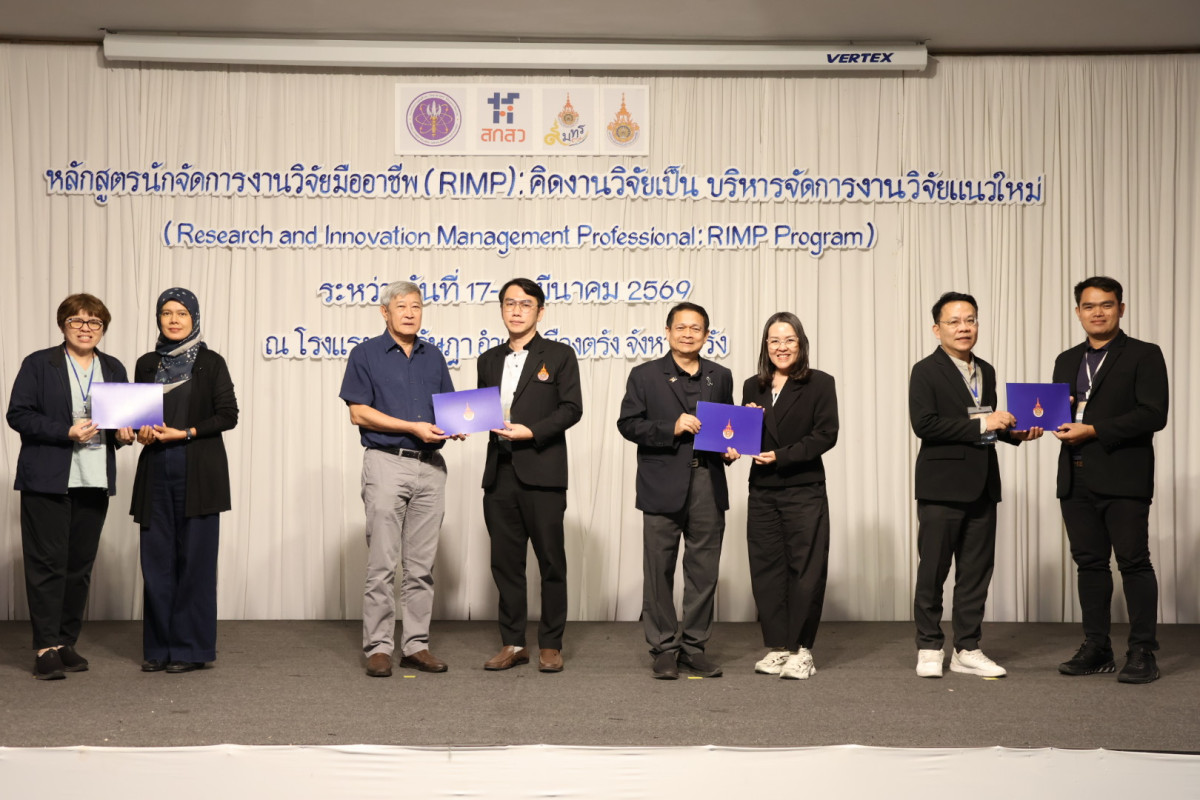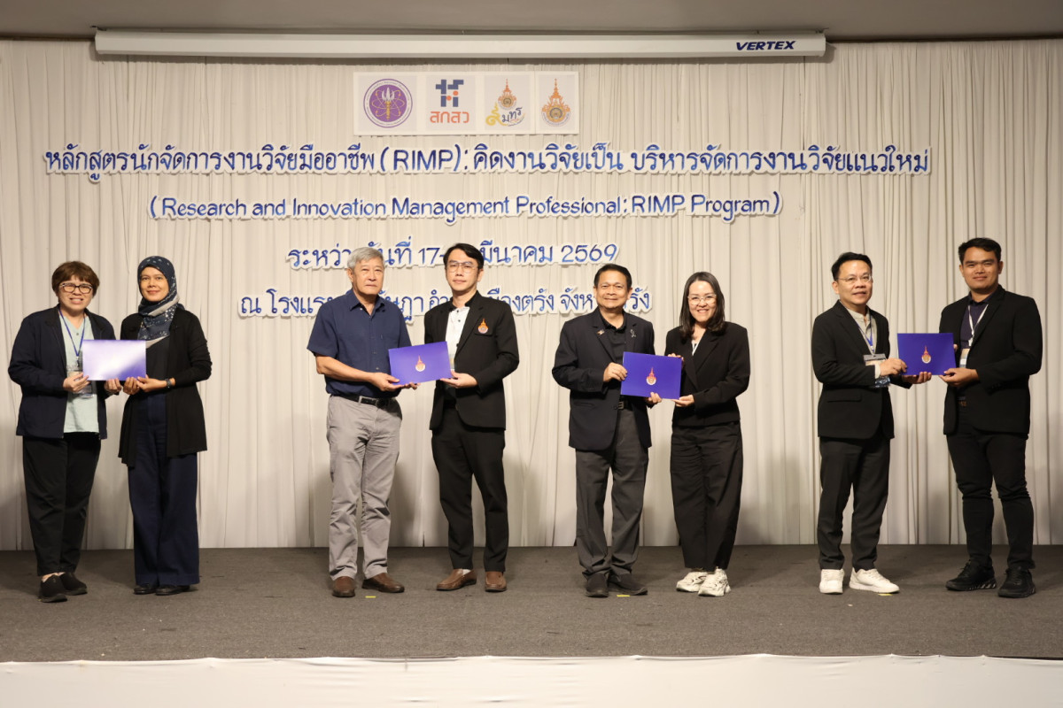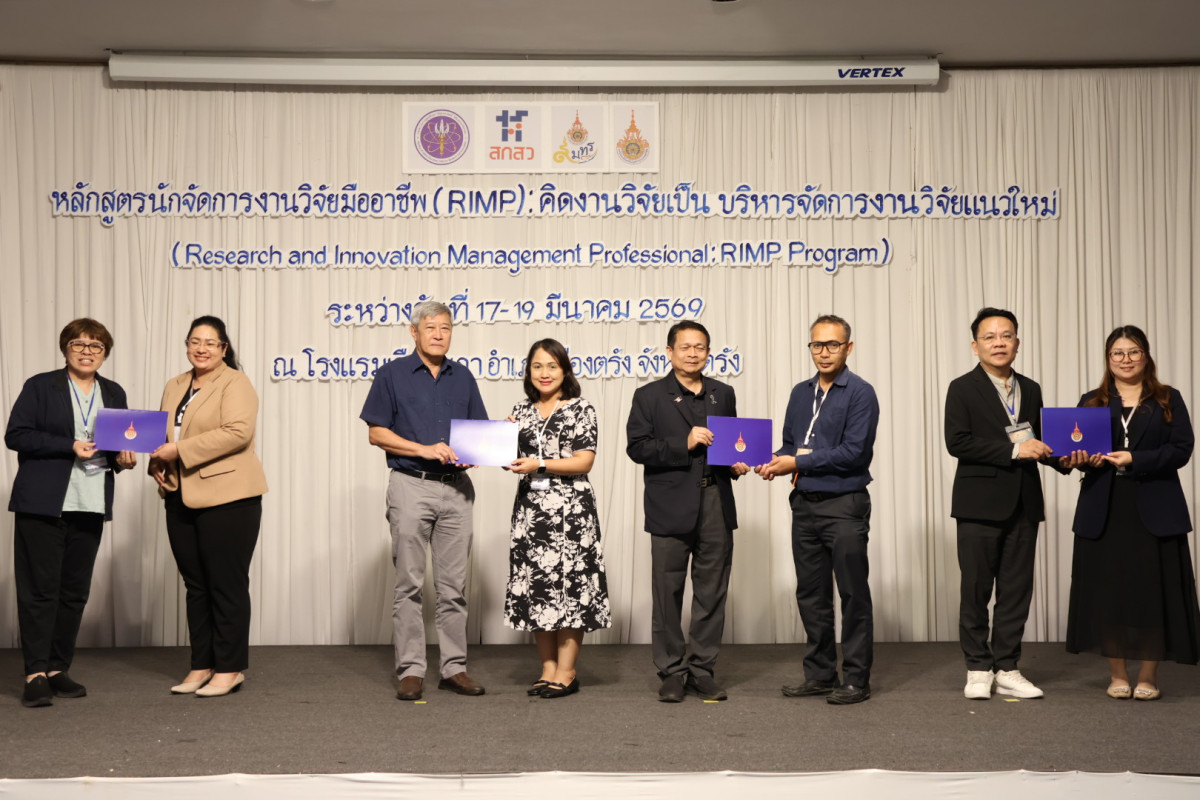 สถาบันวิจัยและพัฒนา (สวพ.) มหาวิทยาลัยเทคโนโลยีราชมงคลล้านนา นำโดย ดร.ศศิพัชร์ สันกลกิจ รองผู้อำนวยการสถาบันวิจัยและพัฒนา นายครรชิต เงินคำคง ผู้ช่วยผู้อำนวยการฯ และบุคลากรสถาบันวิจัยและพัฒนา เข้าร่วมหลักสูตรอบรม “นักจัดการงานวิจัยมืออาชีพ (Research and Innovation Management Professional: RIMP)” ณ จังหวัดตรัง เพื่อยกระดับสมรรถนะบุคลากรสายสนับสนุนงานวิจัย และเตรียมความพร้อมในการขับเคลื่อนยุทธศาสตร์วิจัยของมหาวิทยาลัยให้สอดคล้องกับทิศทางการพัฒนาประเทศ