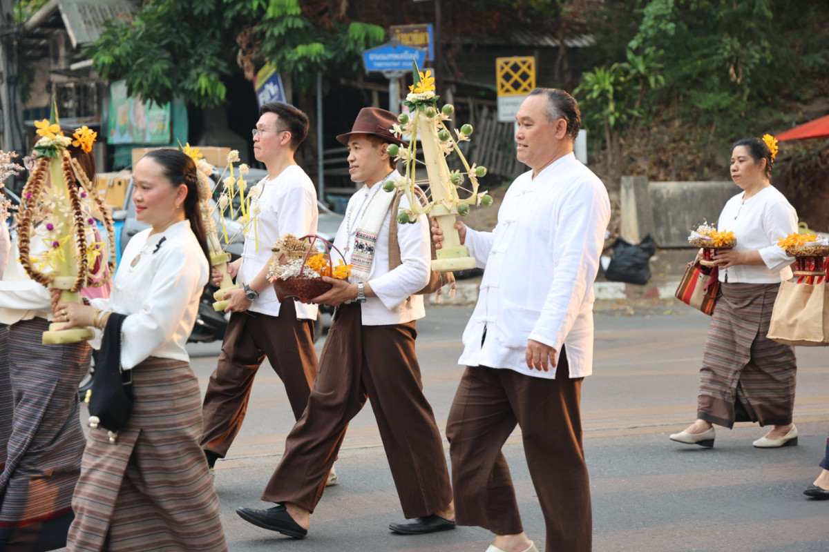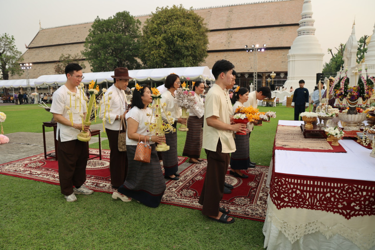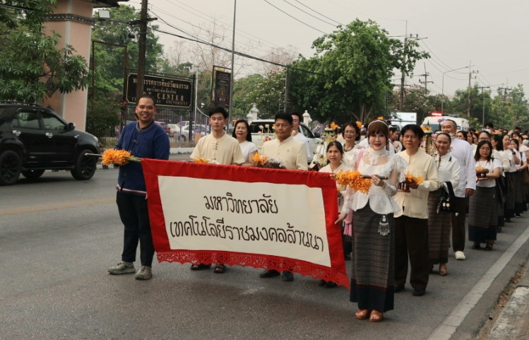 วันที่ 17 เมษายน 2569 ผู้ช่วยศาสตราจารย์ ดร.อรรณพ ทัศนอุดม รักษาราชการแทนอธิการบดี มหาวิทยาลัยเทคโนโลยีราชมงคลล้านนา มอบหมายให้ ผู้ช่วยศาสตราจารญ์ชัยปฐมพร ธนพัฒน์ปวงวัน ผู้อำนวยการศูนย์วัฒนธรรมศึกษา พร้อมด้วยคณะผู้บริหารและตัวแทนบุคลากรจากหน่วยงานต่างๆ ของ มทร.ล้านนา เข้าร่วมพิธีสักการะกู่เจ้าหลวงเชียงใหม่ เพื่อรำลึกถึงพระมหากรุณาธิคุณของเจ้าหลวงเชียงใหม่และทายาทเจ้านายฝ่ายเหนือ ที่ได้สร้างคุณูปการสำคัญแก่ชาวล้านนา โดยจัดริ้วขบวนเครื่องสักการะล้านนาอย่างงดงาม พร้อมโตกน้ำขมิ้นส้มป่อย และพานดอกไม้ เคลื่อนขบวนจากหอศิลปวัฒนธรรม มหาวิทยาลัยเชียงใหม่ สู่กู่เจ้าหลวง ภายในวัดสวนดอก พระอารามหลวง
